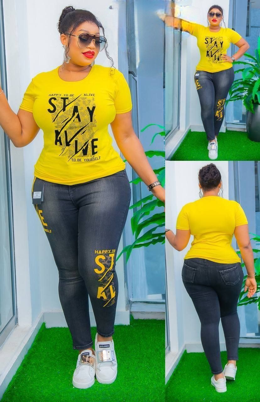 Teeshirt &pantalon. Jaune. Là taille 44&46.?Neuf avec étiquette